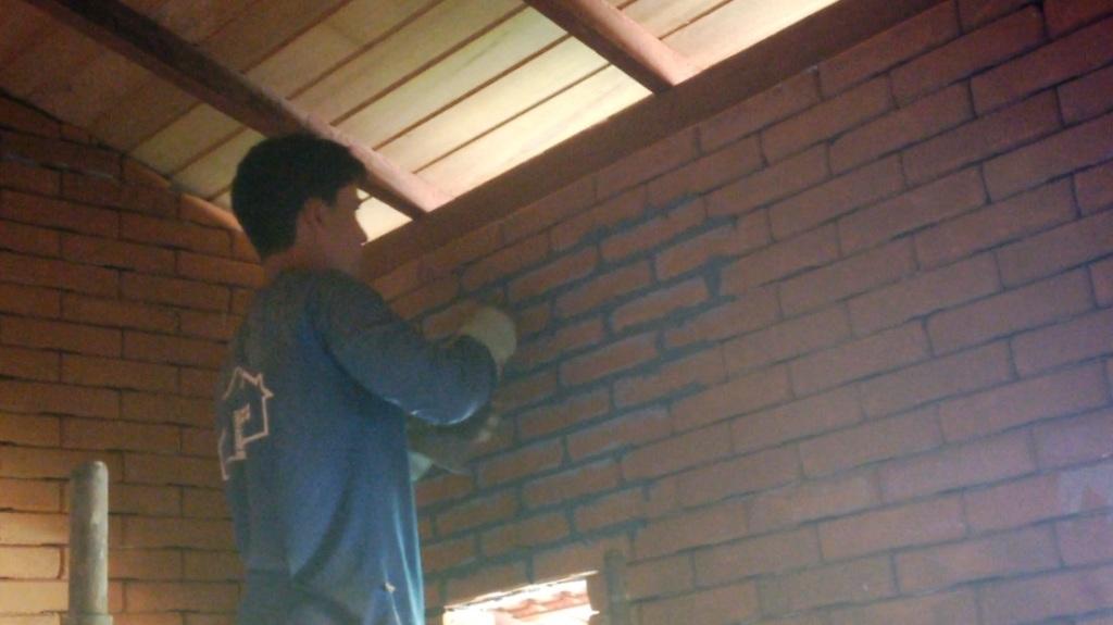 Construção com tijolo ecológico – Aplicação de argamassa para rejuntamento (obra em Vassouras/RJ)
