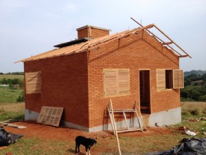 Construção com tijolo ecológico – Execução de telhado (obra em Cambuquira/MG)